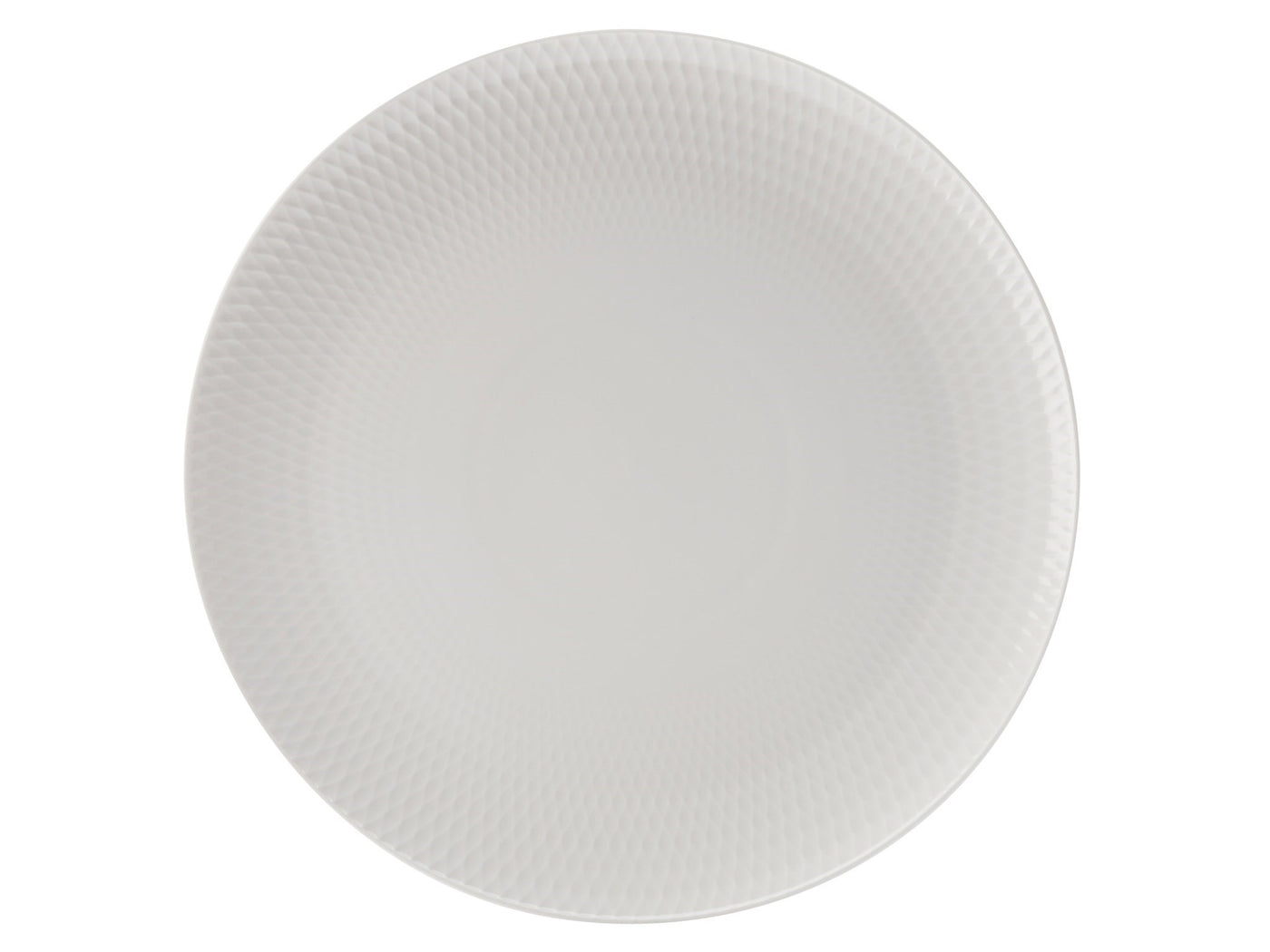 Sophistication with a touch of glamour. The Diamonds Round Platter exudes understated elegance with its rippling faceted pattern inspired by the facets of a diamond. Crafted from prestige porcelain with 30% aluminum, this 36cm platter reflects light beautifully, adding depth and sophistication to your dining presentation. Designed to complement the White Basics collection, it also pairs effortlessly with a variety of colours, patterns, and natural textures for a timeless and captivating table setting.