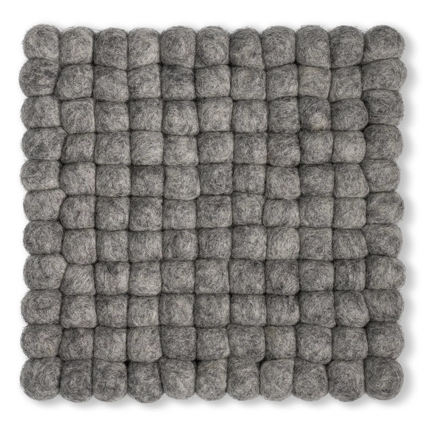 Protect your surfaces with our stylish 8x8 inch square trivet, crafted from soft wool felt balls in a neutral light grey color. This handcrafted piece adds a touch of contemporary elegance to your dining table or kitchen, combining functionality with modern design. Its unique texture and durable construction make it a standout accessory for any home decor. All MODWOOL items are ethically sourced and handmade in Nepal with 100% pure New Zealand Wool. With a team of over 100 local artists, the factory focuses on employment opportunities as well as training programs for women in rural villages.