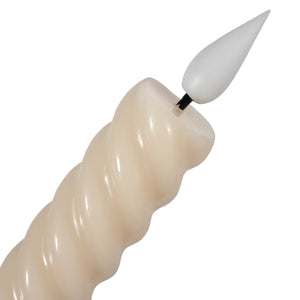TAPERS-IV TWIST 8"(S2)Ivory twist wax taper with LED wick. (Set of 2). Auto timer. Takes 2 AAA batteries.