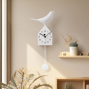 A charming addition to any space, the swinging pendulum of this clock moves in time with the birds beak and tail. The pendulum can be removed to use the clock on a table or shelf. Metal and plastic. Gift boxed.