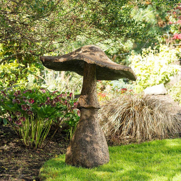 Part of a very attractive five piece set, this giant Garden Mushroom is manufactured in 2 parts, the base is cast solid and the top is made using our 'lay-up' technique. The result is a great looking garden feature that can be left outside year round.