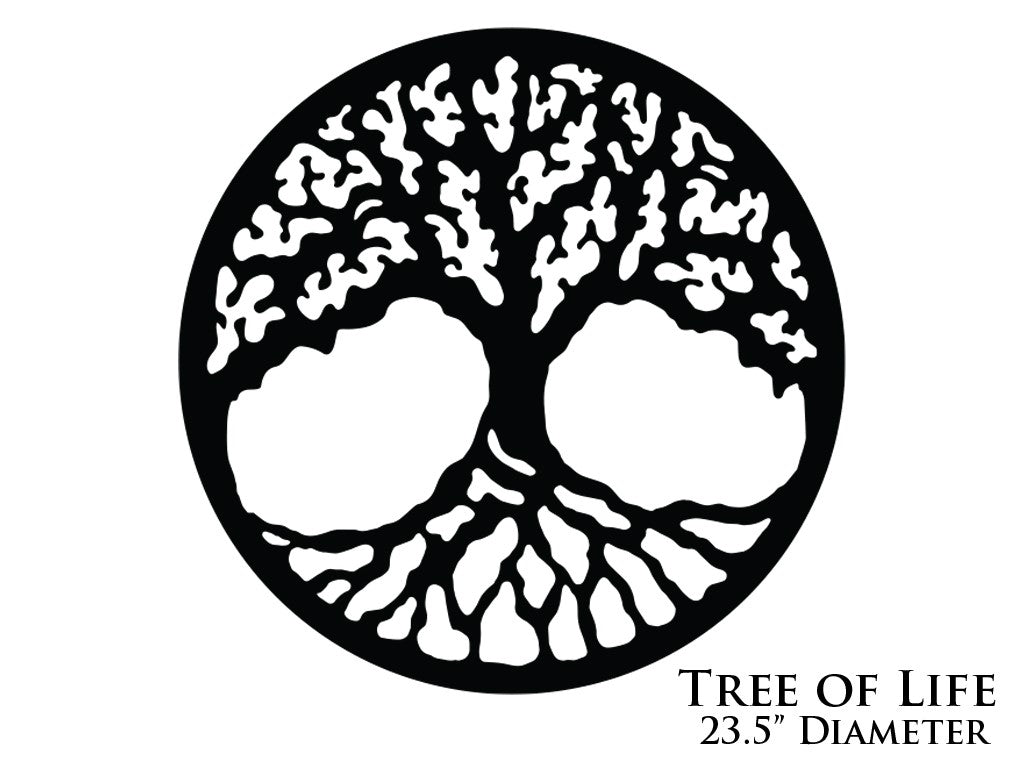 Made from 1/8” thick Steel. Mounting tabs on the back side create a 1/2” stand off from your wall. 23.5″ in diameter.