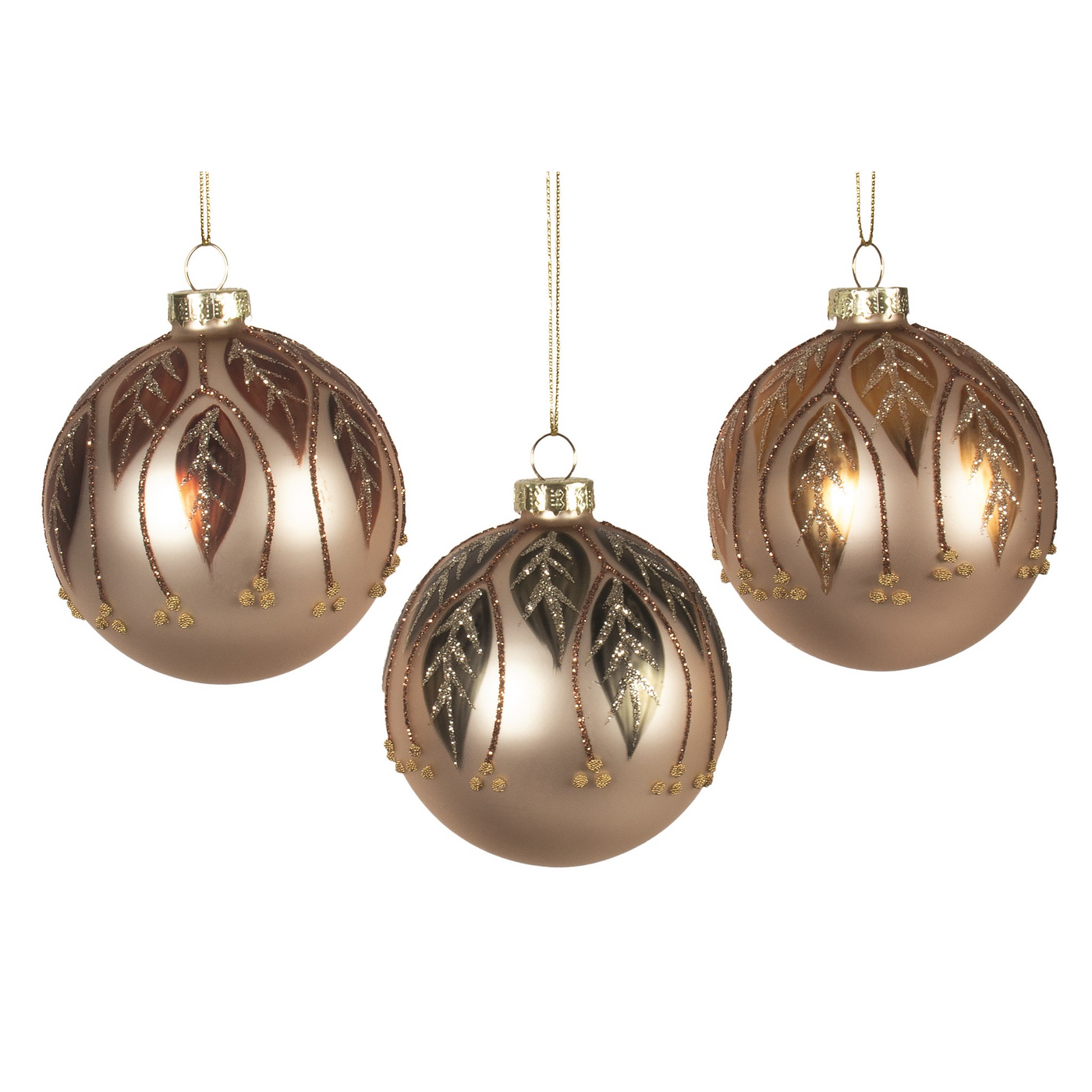 Orn Glass Matte Leaves Glitter