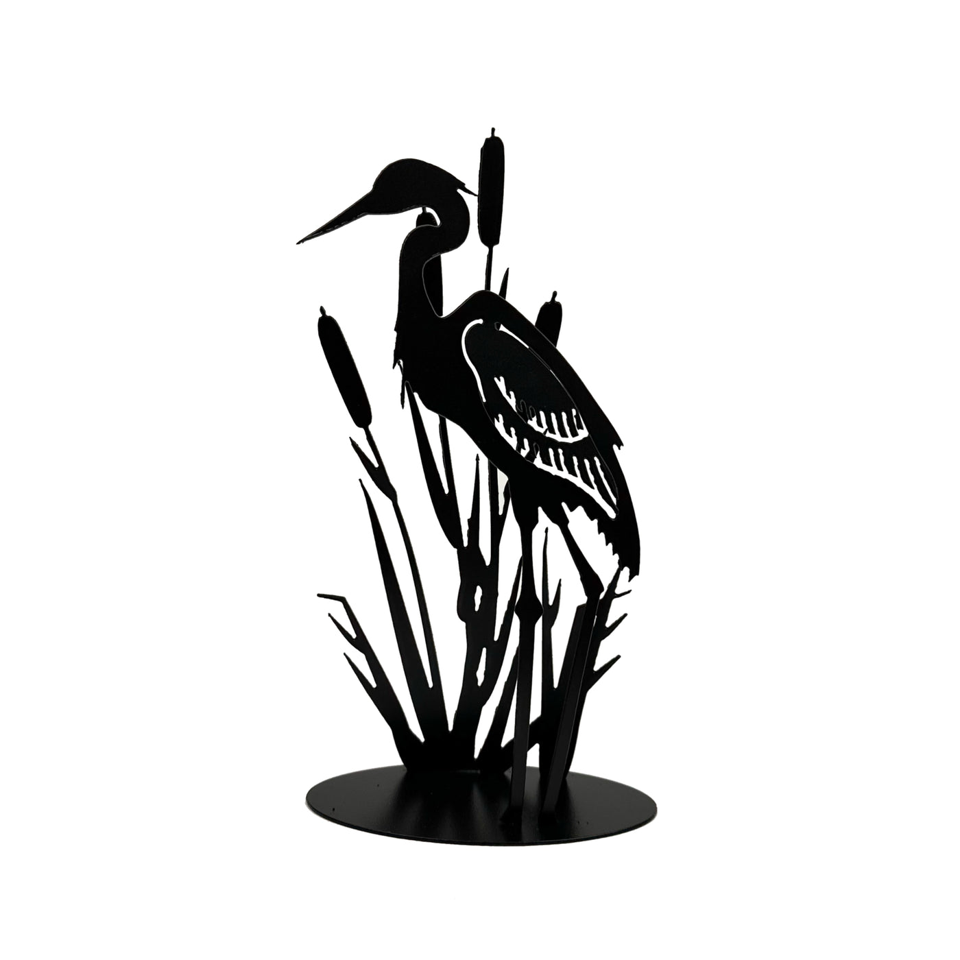 Anvil Island Design artist Jack Willoughby lives on Vancouver Island where the ocean beaches give him much of his inspiration. Stunning heron with cattails , beautifully re-created in cold rolled steel by Anvil Island Designs. The strength and simplicity of his work makes it equally at home in the house, office or in an outdoor setting.