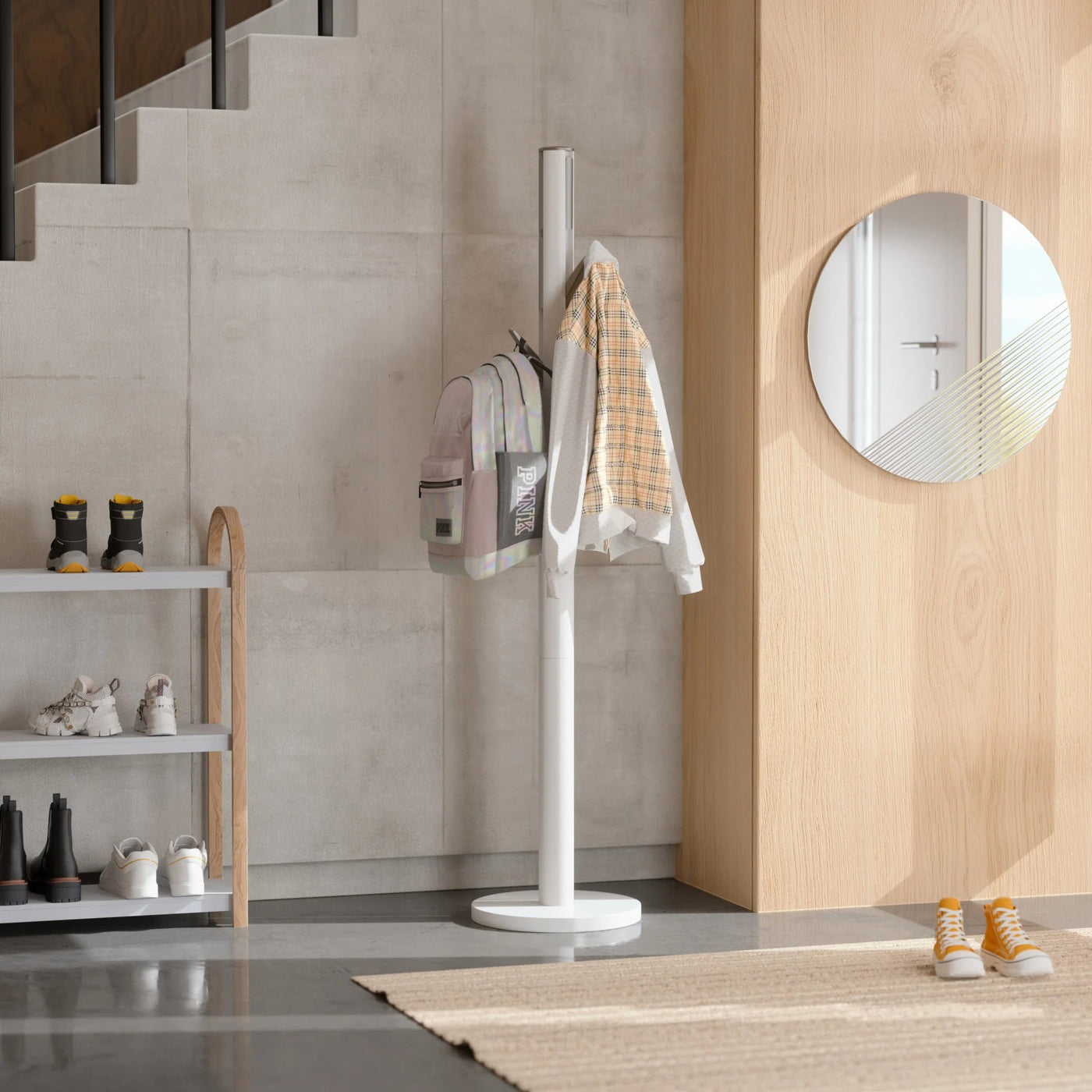 This wooden coat rack stands tall and sleek with nine flip-down hooks, offering ample storage with the ability to tuck away when not in use. Made of wood, Flapper has a tree-like aesthetic, while being entirely modern. Available in a variety of modern finishes, Flapper is sleek in design while keeping ample utility. Measures 15.63 x 15.63 x 66 inches (40 x 40 x 168 cm). Sourced from renewable wood sources. Wood is a unique natural material with variations in tone, texture, and grain. The product may vary from our imagery. ⓘ For Best Care: wipe with a clean damp cloth