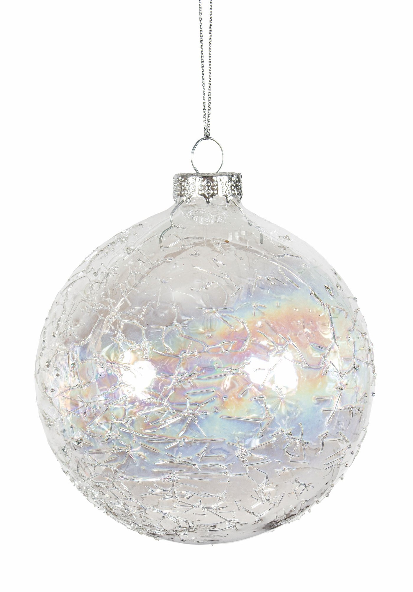 Orn Glass Crackle Ball Iridescent