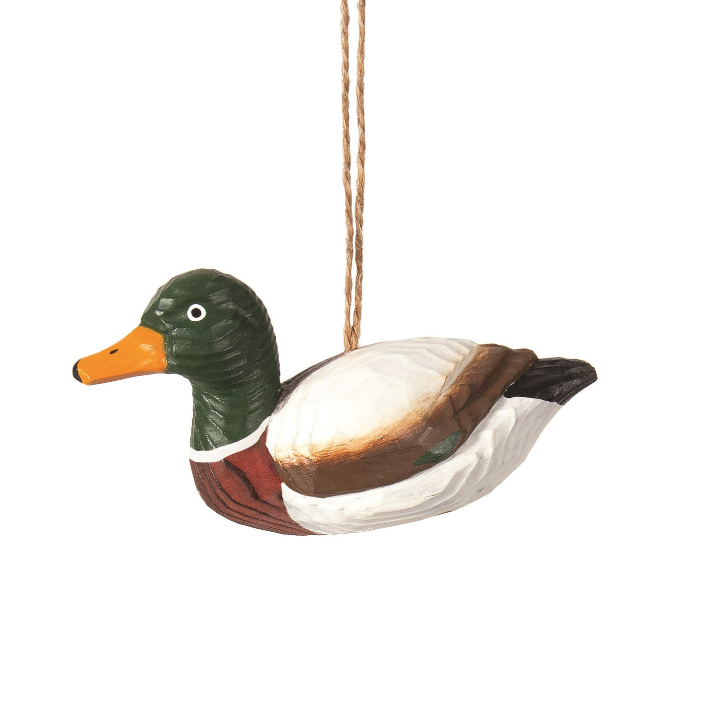 ORN-DUCK WOODCarved wood duck ornament.4.5"l x 1.75"w x 2.5"h.