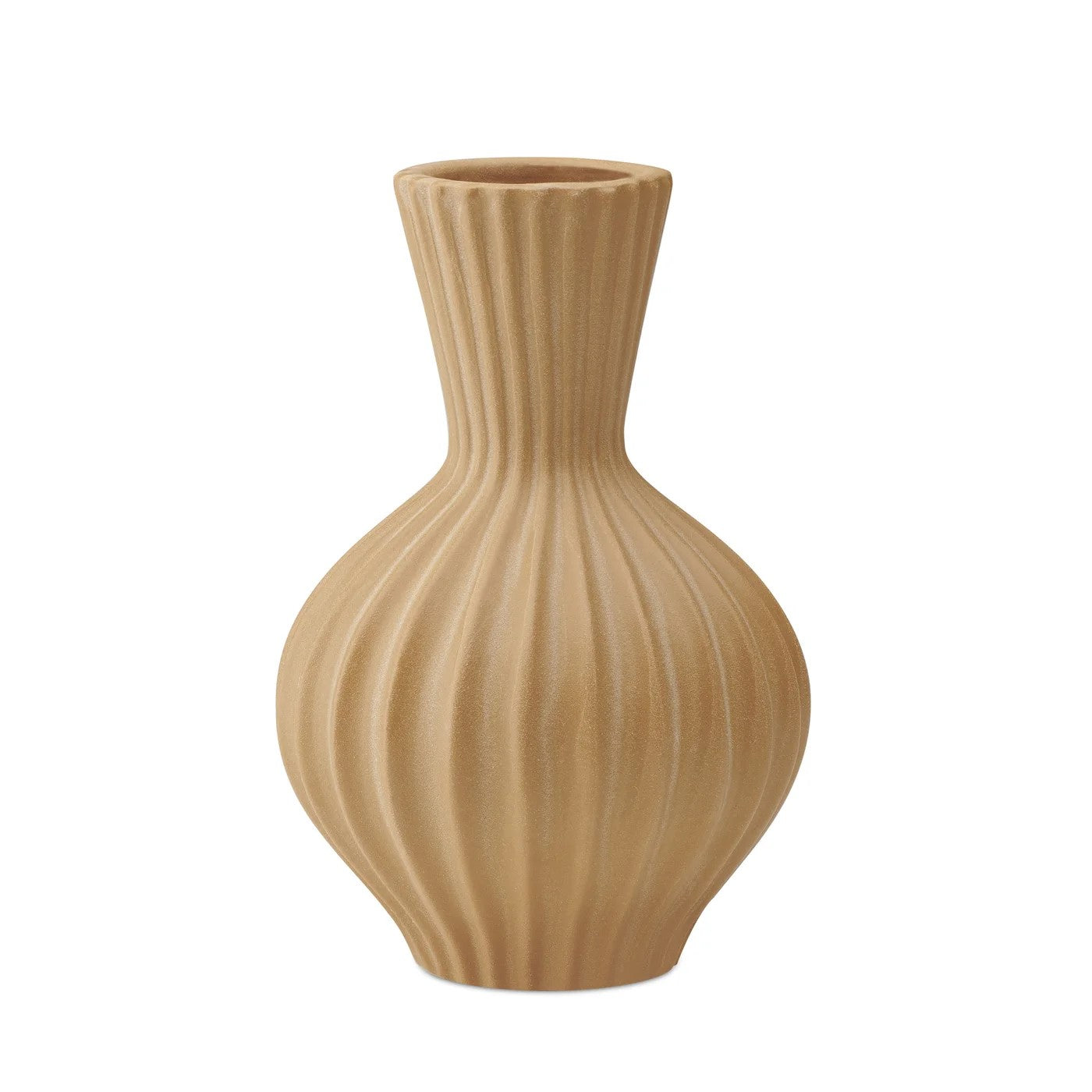 The perfect addition to a small space, this ceramic gourd vase will add charm and whimsy to a shelf or table. The textured sandstone-inspired glaze highlights the ribbed texture and adds to the unique design of this decorative piece. Fill with a small bouquet of fresh or faux florals or stems, or display it on its own with other objects.