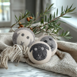 Enhance your laundry routine with our set of three Sheep Design MODWOOL Felt Dryer Balls in a convenient cotton bag. These eco-friendly dryer balls are not only functional but also add a touch of style to your laundry room. Handcrafted with care in three varied patterns, these dryer balls help reduce drying time, soften fabrics, and eliminate static cling, all while adding a delightful visual element to the process. All MODWOOL items are ethically sourced and handmade in Nepal with 100% pure New Zealand Wool. With a team of over 100 local artists, the factory focuses on employment opportunities as well as training programs for women in rural villages.